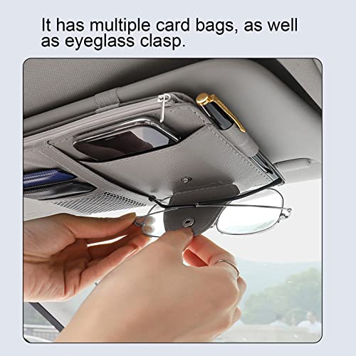 MIVAIUN Organizer per Aletta Parasole Auto, Gccessori per Interni Portaoggetti per Alette parasole in PU, Staffa Multifunzione, Utilizzato per Carta di Credito Occhiali da sole, Portafoglio (Grigio)