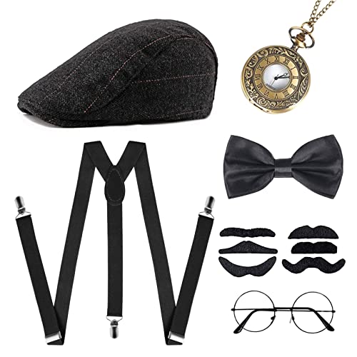MIVAIUN 6 Pezzi Set di Accessori Anni 1920s, Anni '20 Costume Accessori Set per Uomo, Costume Great Gatsby Mafia Anni '20, per Natale Festa in Maschera Halloween, Set di Fantasia Charleston (Set F)