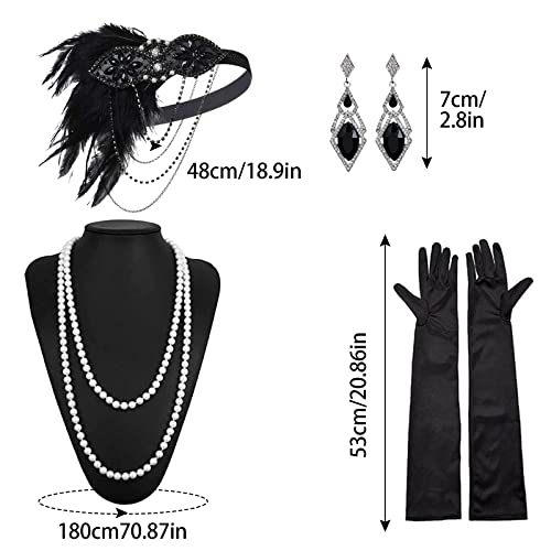 MIVAIUN 5 Pezzi 1920 Accessori Set, 1920s Accessori Flapper Anni 20s Gatsby Costume Set, Accessori Anni '20, Collana Cerchietto Guanti Orecchini, Accessori per Feste e Balli di Fine Anno (5 Pezzi)
