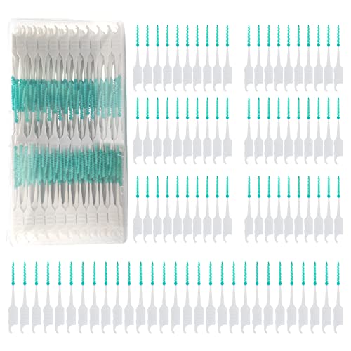 MIVAIUN 300 Pezzi Bastoncini di Filo Interdentale,Scovolini Interdentali Adattivi,Spazzolino Interdentale,Interdentale a Doppio Uso,Spazzolino Dentale per La Pulizia dei Denti(Verde)