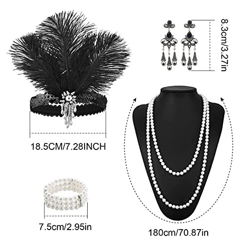 MIVAIUN 6 Pezzi Anni '20 Flapper Great Gatsby Accessori Set, 1920 Accessori Set, Anni '20 Accessori Accessori, Charleston Costum, Anni 20 Fascia Capelli Piume, Accessori Anni 20 Donna (6 Pezzi)