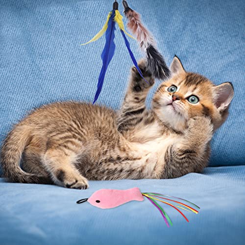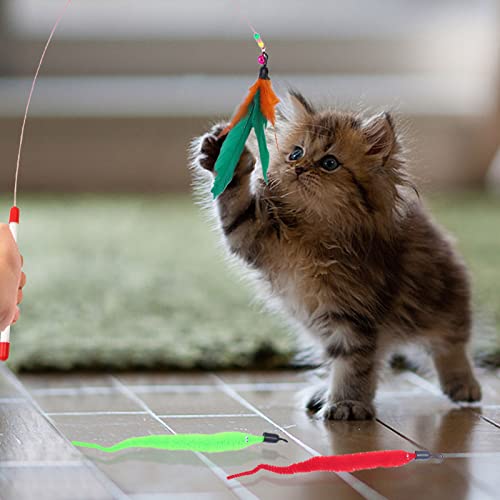 MIVAIUN 11 Pezzi Giocattolo Per Gatti Con Piuma, Giochi con Piume per Gatto, Giocattoli Interattivo per Gatti, Bacchetta Interattiva, per gioco esercizio attività e divertimento