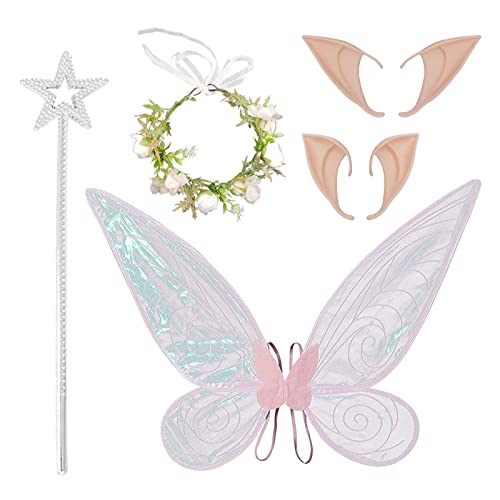 Quantità della confezione: riceverai un set di 5 ali da fata a farfalla, 1 ala rosa, 1 bacchetta fata, 1 ghirlanda e 2 paia di orecchie da elfo. Il set da 5 pezzi abbinato ti farà risparmiare tempo per acquistare pezzi e pezzi separatamente da abbinare.