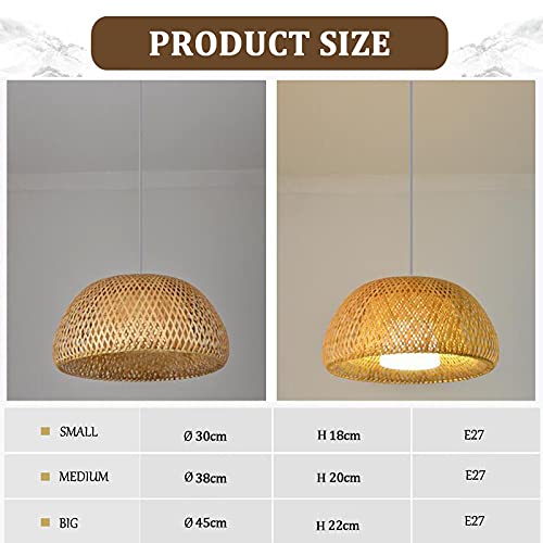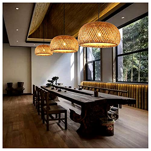 MIVPD Hanging Chandeliers Bamboo Weaving,Natural Rattan Pendant Light Fixtures Retro Wicker Weaving Ceiling Light DIY Hand Woven Wood Lantern Height Adjustable Loft Bedroom Restaurants Bars Deco,45cm