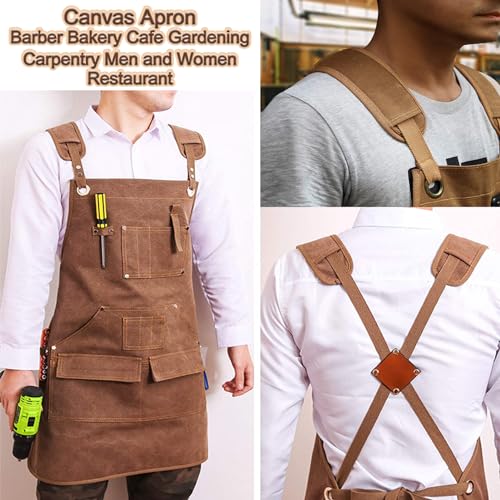 MIXBEL Grembiule Da Lavoro Uomo, Grembiule Da Falegname Uomo, Grembiule Da Lavoro Con Tasche Con Spalline Regolabili, Grembiule Strumenti Di Lavoro Uomo 9 Tasche Tela Cerata Durevole, Marrone