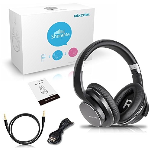 Mixcder ShareMe 5 - Cuffie pieghevoli Bluetooth 4.1 + EDR pieghevoli in pelle sintetica e plastica, cuffie stereo wireless con microfono integrato, riduzione del rumore, audio Over-Ear con tecnologia ShareMe per iPhone 7, iPhone 6S, 6 Plus, 6S Plus, 5, 5 C, 5S, 4S, Samsung, Xiaomi, Huawei, iPad, computer e tablet, colore nero