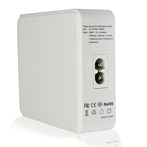 Mixed-Gadgets 33W USB Charger Multi Porta 6 Porta USB tavolo Caricatore rapido da viaggio per iPhone, iPad, Samsung, Nexus, HTC, Nokia, Motorola dispositivi Android (Bianco)