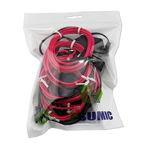Mixed-Gadgets, cavo splitter elettroluminescente (EL Wire), 5 cavi da 1 m, luce stroboscopica al neon, rosso, Pink