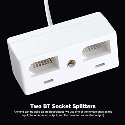 Mixed-Gadgets, Cavo splitter da una presa telefonica BT a due prese BT del Regno Unito, colore: bianco 1 to 2 Splitter
