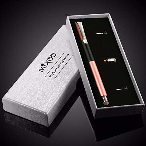 Mixoo 2 in 1 Penna Touch Pennino Tablet Penna per ipad Tablet Punta Fine Universale con 2 Punte a Disco e 1 Punte in Fibra Stilo per iPad,iphone,Smartphone,Touchscreen e Tablet - Oro rosa