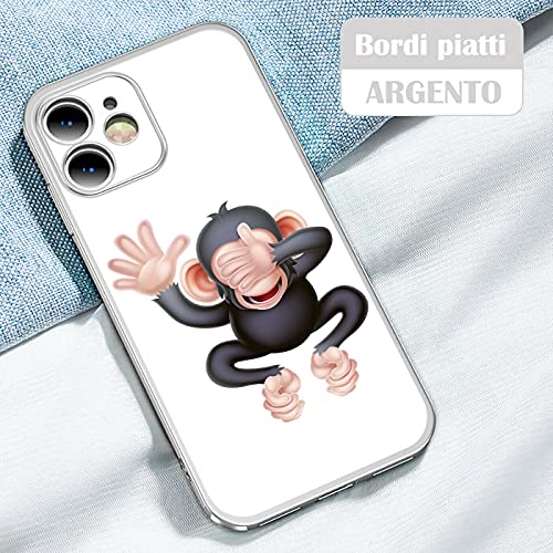 Mixroom - Cover Custodia per iPhone XR in Silicone TPU Morbido con Placcatura Colore Argento Bordi Piatti Fantasia Scimmia Che Si Copre Gli Occhi 655