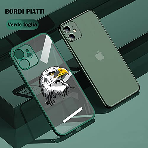Mixroom - Cover Custodia per iPhone 12 in Silicone TPU Morbido con Placcatura Colore Verde Foglia Bordi Piatti Fantasia Aquila 804