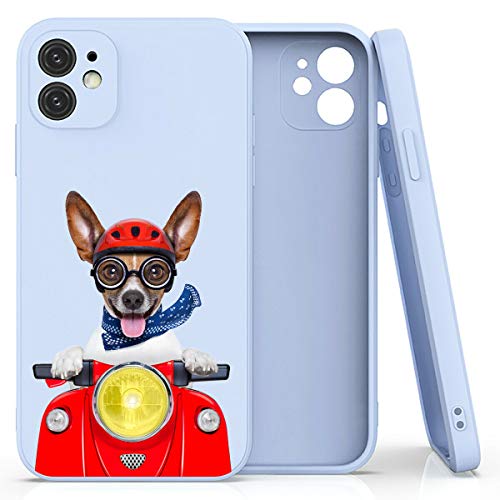 Mixroom - Cover Custodia per iPhone 12 Mini in Silicone TPU Opaco con Bordi Piatti Colore Lilla Fantasia Jack Russel in Vespa 643