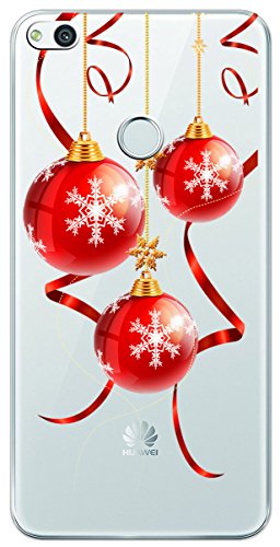 Mixroom - Cover Custodia Case in TPU Silicone Morbida per Huawei Ascend P8 Lite 2017 M627 Palle di Natale Rosse