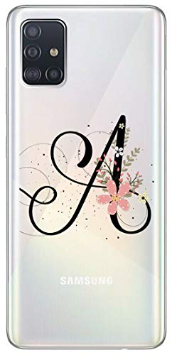 Mixroom - Cover Custodia Case in TPU Silicone Morbida Sfondo Trasparente per Samsung Galaxy A51 Fantasia Iniziali Lettera A con Fiori