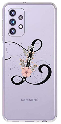 Mixroom - Cover Custodia Case in TPU Silicone Morbida Sfondo Trasparente per Samsung Galaxy A33 5G Fantasia Iniziali Lettera L con Fiori