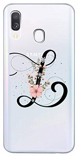 Mixroom - Cover Custodia Case in TPU Silicone Morbida Sfondo Trasparente per Samsung Galaxy A40 Fantasia Iniziali Lettera L con Fiori