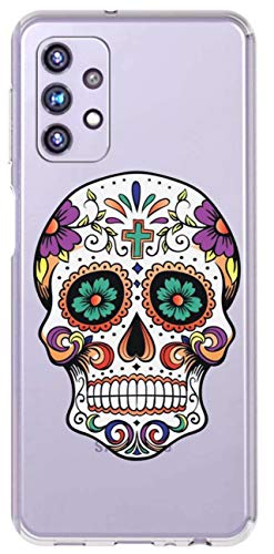 Mixroom - Cover Custodia Case in TPU Silicone Morbida Sfondo Trasparente per Samsung Galaxy A52 / A52 5G / A52s 5G Fantasia Teschio Messicano T450