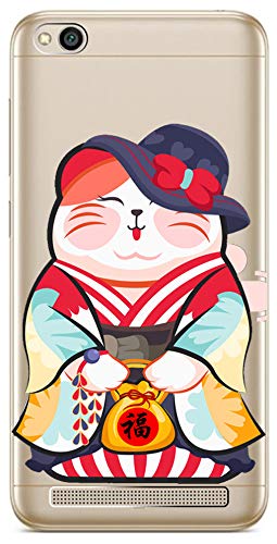 Mixroom - Cover Custodia Case in TPU Silicone Morbida per Xiaomi Redmi 5A T401 Gatta Giapponese Porta Ricchezza
