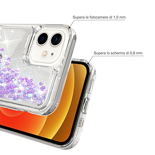 Mixroom - Custodia Cover Case per iPhone 13 PRO Max con Brillantini Glitter in Gel Liquidi Quicksand Lilla Fantasia Fenicotteri Rosa Codice 461