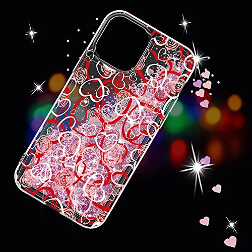 Mixroom - Custodia Cover Case per iPhone 13 Mini con Brillantini Glitter in Gel Liquidi Quicksand Rosa Fantasia Fenicottero Rosa Codice 654