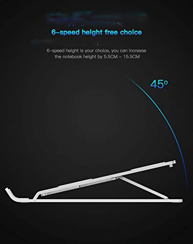 【6 LIVELLI DI OCCHI DESIGN ERGONOMICO】 - il supporto per laptop eleva il tuo notebook da 2,5 "a 6" di altezza per un perfetto livello degli occhi, totale 6 scelte di altezza, che fissa la postura e riduce il mal di schiena, la rigidità del collo e i dolori del polso. Molto comodo per lavorare
