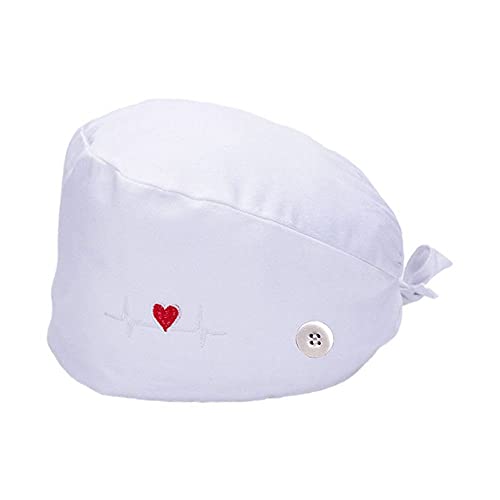 MIYAA 4 Pezzi Regolabili Cappello Scrub Cuffie chirurgiche con Bottone e Fascia antisudore Stampa ECG Ponytail Holder Cappellino Bouffant for Unisex,Bianco,Taglia Unica