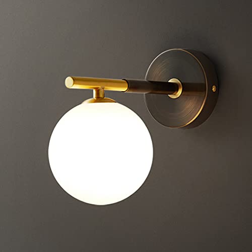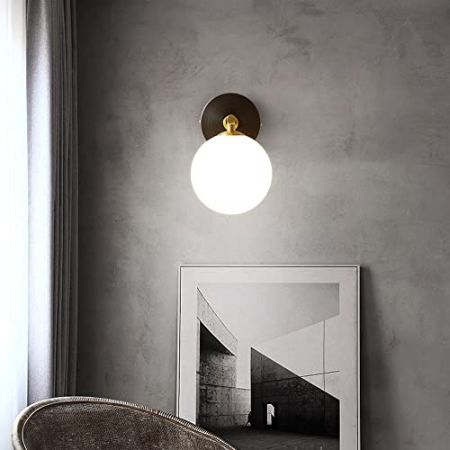 MIYORA Applique da parete classica moderna con paralume a sfera in vetro smerigliato, applique da parete interna in metallo nero/oro per comodino, camera da letto, bagno, luci da toeletta E27 Luci da