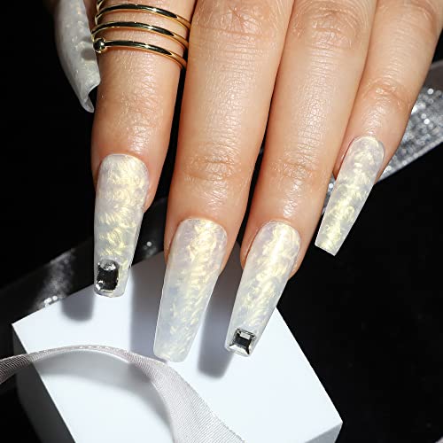 MIZHSE Smalto gel per unghie Pearl Effect UV bianco UV gel smalto giallo Shimmer bianco perlato smalto smalto con filo shell gel UV 10 ml Soak Off UV lampada LED smalto smalto