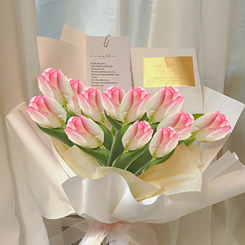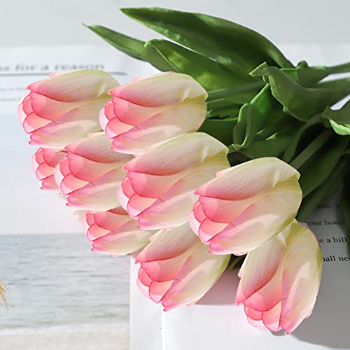 Mizikuu Tulipani finti, 10 Fiore Finto Tulipano Materiale in Lattice Vero Tocco Realistici Fiori Finti da Bouquet Seta Fiori Artificiali per Matrimonio Decorazioni Alberghi Festa DIY, Rosa Chiaro