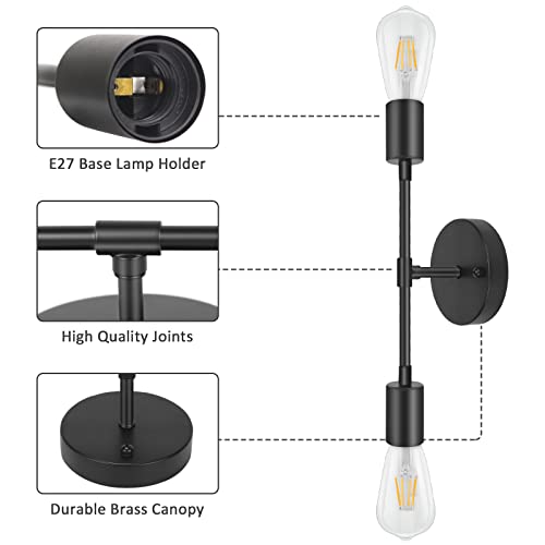 Mizlay Lampada da parete per interni, lampada a specchio a LED, lampada da parete per portico nero opaco, lampada da parete moderna per interni vintage E27, senza lampadina, (Set di 1)
