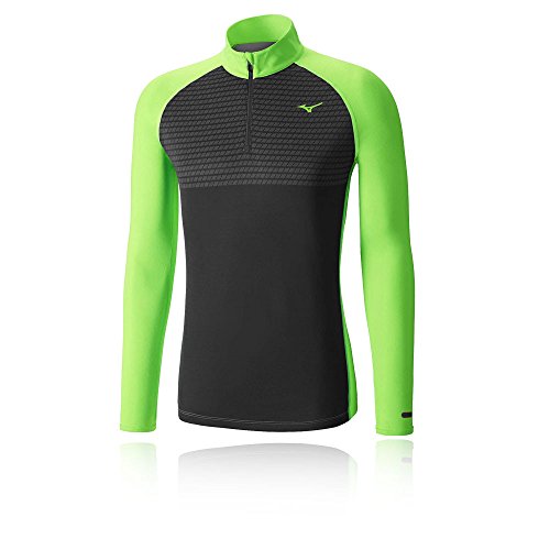 Mizuno Maglia Termica da Uomo con Tecnologia Body Mapping, Manica Lunga, 1/2 Zip, Uomo, Breath Thermo Body Mapping, Black/Green Gecko, L