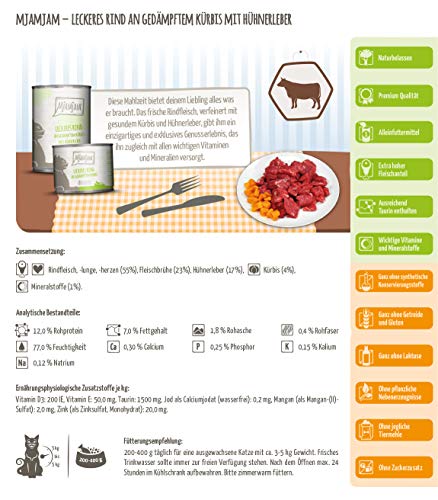 MjAMjAM - cibo umido premium per gatti - delizioso manzo con zucca al vapore, confezione da 6 (6 x 400 g), senza cereali con carne extra