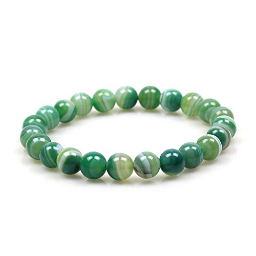 MJDCB Bracciale Pietre Agata Striata Verde Naturali, 8mm Perle Braccialetti Portafortuna