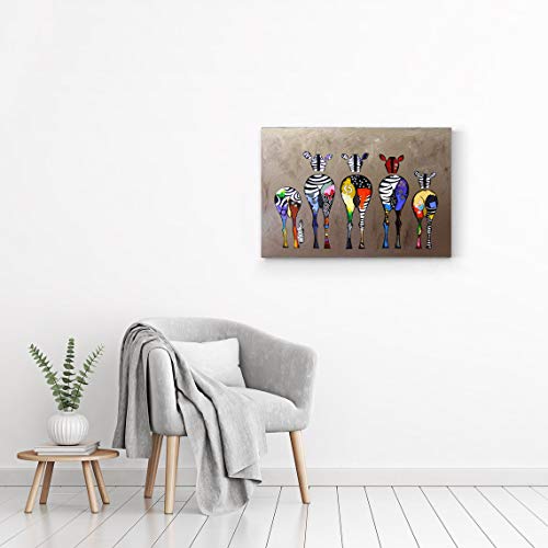 MJEDC Banksy Quadro su tela su tela con zebra, con scritta in lingua tedesca Colourful Rears Graffiti Street Art, pronta su telaio, stampe artistiche per soggiorno, decorazione da parete XXL, 80 x