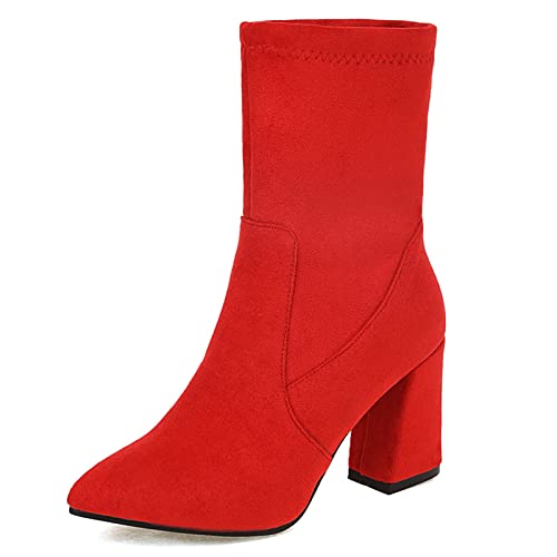 MJIASIAWA Donna Senza Chiusura Moda Appuntito Stretch A Collo Alto Boots Inverno Warm Festa Formal Vestito Eleganti Tacco A Blocco Stivaletti Rosso Numero 38 EU/39 Asiatico