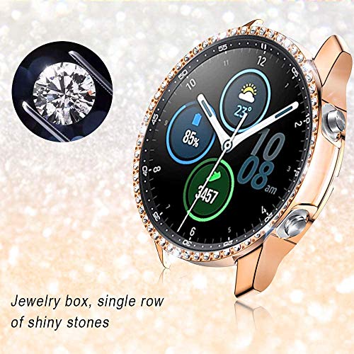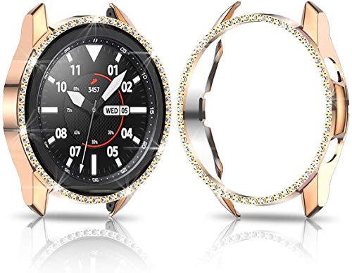 MJRom Custodia protettiva per Samsung Galaxy Watch 3 da 45 mm, in PC Bling compatibile con Samsung Galaxy Watch 3 (2020), accessorio per smartwatch (45 mm, oro rosa)