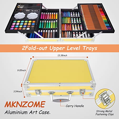 MKNZOME Set di Disegno Artistico 120 Pezzi, Set Pittura Professionale con Valigetta, Comprende pastelli a Olio, matite Colorate, acquerelli, acrilici, Ideale Regalo per Studenti e artisti-Giallo#3