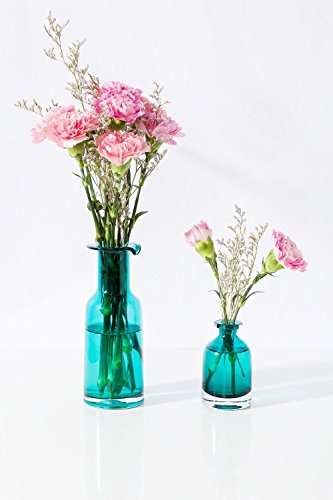 Mkouo Blue Flower Vase Decorative Art Glass Home Decor Set of 2, Blue