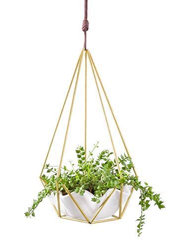 Mkouo, Vaso geometrico per piante da appendere, decorazione Himmeli geometrica in ottone con vaso in ceramica, ideale per piante grasse, mini cactus, Tillandsia, piante finte e altre piante, dimensione: 30,5 x 17,2 cm