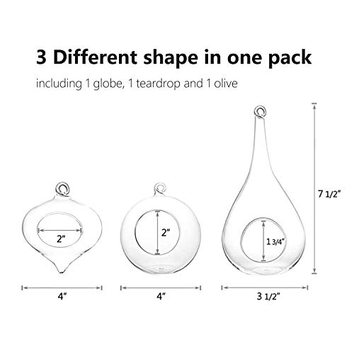 Package Included: 1× Teadrop terrarium, 1×Globe terrarium, 1 x Olive terrarium, and 1 x 2mm thick long jute rope to cut for the length you need. Note: Plants and other decorations are not included in this set. Glass products are fragile, please treat it carefully when installed.