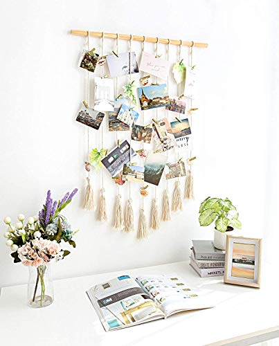 With this macrame print artwork display, you can give your custom wall art a makeover and refresh your home decor any time you want by simply removing or adding photos with removable wood clips.