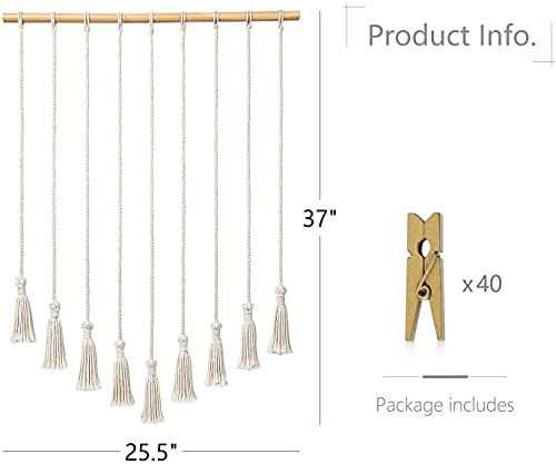 Mkouo Hanging Photo Display Macrame Wall Hanging Pictures Decor Boho Chic Home Decoration for Apartment Bedroom Living Room Gallery, with 40 Wood Clips, 94cm(L) x 64.7cm(W)