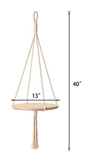 Size: This macrame hanging shelf is approximately 40" in height including the tassel, wooden shelf is about 13" in diameter. Mkouo is a registered trademark and our product is professional manufacturing and sole selling.