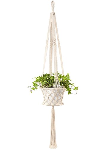 Mkouo Macrame Plant Hanger indoor a forma di vaso del cestino con anello in metallo all' interno, corda di cotone 4 gambe 121,9 cm, fino a 20,3 cm vaso di fiori