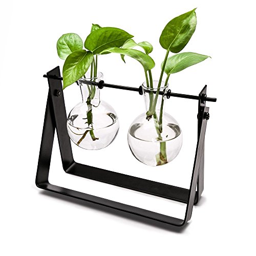 Mkouo Modern Glass Planter da Tavolo pianta Decor Bulb Bulb Flower Vase con Supporto in Metallo