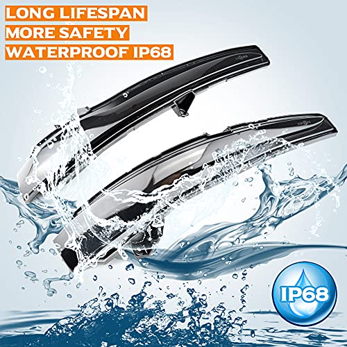 Design avanzato: cambiare le luci del segnale di rotazione da un semplice sfarfallio a uno sfarfallio sequenziale dinamico è molto più luminoso e piacevole. Non solo migliora l'aspetto della tua auto, ma massimizza anche l'illuminazione del lato conducente e del passeggero. Lunga durata, impermeabile, basso consumo energetico e elevata purezza della luce.