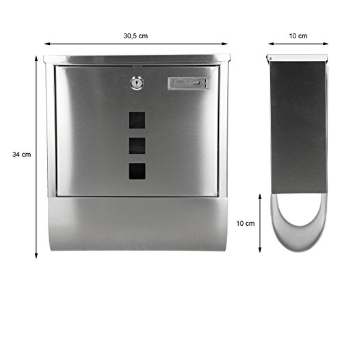 DETTAGLI DI PRODOTTO - Dimensioni (LxlxA): 30,5 x 10 x 34 cm, Materiale: acciaio inossidabile con rivestimento antiruggine supplementare, Peso dell'articolo: ca. 2 kg, Apertura a ribalta (LxA): 24,5 x 3,5 cm, Apertura a ribalta (LxA): 21 x 26,5 cm, Colore: argento.
