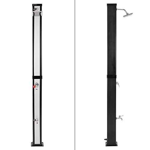 MATERIALE DI ALTA QUALITÀ - Questa doccia solare è fatta di un materiale PVC di alta qualità, che assorbe il calore al massimo. Il design moderno rende la doccia solare elegante mentre è resistente alla corrosione, robusta e durevole. Puoi lasciare la doccia in giardino tutta l'estate senza sensi di colpa;
