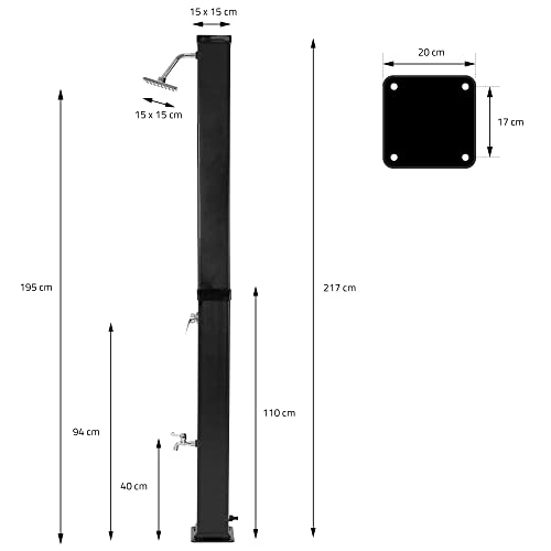 ML-Design Doccia Solare da Giardino 40L 217cm Quadrata con Soffione Rubinetto a Pioggia Acqua Calda Temperatura Massima 60°C per Esterno Piscina Spiaggia Campeggio a Risparmio Energetico Nero/Argento